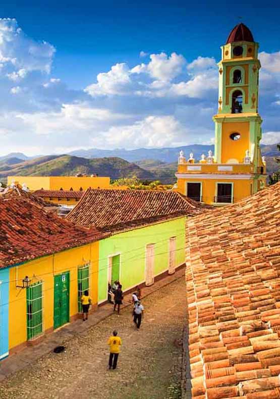 Tercera villa fundada por los conquistadores españoles, en 1514, y ubicada en la central provincia de Sancti Spíritus, Trinidad es la más serena, delicada y generosa estampa coloreada de los viejos tiempos de Cuba. La conservación casi inalterada de uno de los conjuntos arquitectónicos de excepcional valor entre los asentamientos coloniales de América convirtió su centro histórico en Patrimonio Cultural de la Humanidad, condición igualmente conferida por la UNESCO en 1988 el Valle de los Ingenios, gran reserva natural y arqueológica de la industria azucarera del siglo XIX, cuya producción hizo de esta ciudad una de las más prósperas de Cuba.